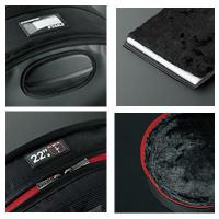 POWERPADシリーズのドラムバッグの生地は、クッション性に優れた4層構造を採用。外側にはナイロン製の生地、内側には2種類の合成樹脂を組み合わせクッション性に優れた素材を(タムタム及びスネアドラム:8mm厚、フロアタム及びバスドラム:13mm厚)、そして一番内側にはドラムシェルをスクラッチから守る、柔らかいファー素材を採用しています。