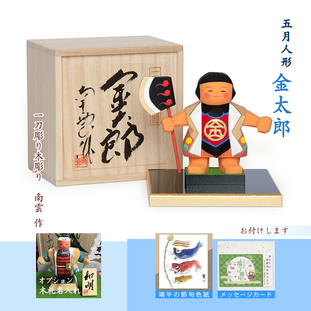 五月人形 端午の節句 コンパクト 金太郎 木彫 初節句 一刀彫り 南雲 桐箱付 皐月人形 大安