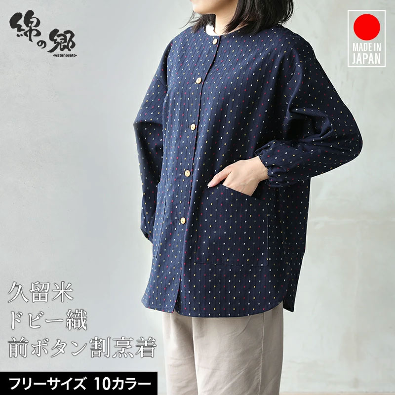 久留米ドビー織前ボタン割烹着 エプロン スモック 還暦祝い 久留米織 キッチン 日本製 ファッション おしゃれ 母の日 プレゼント 実用的