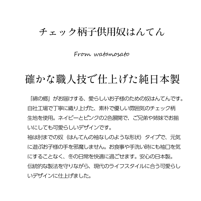 日本製 久留米織 子供用 半纏 ギンガムチェック柄 リメイク版 幼児 こども はんてん 半天 袢纏 中綿 暖かい 柔らか どてら 男の子 女の子 プレゼント