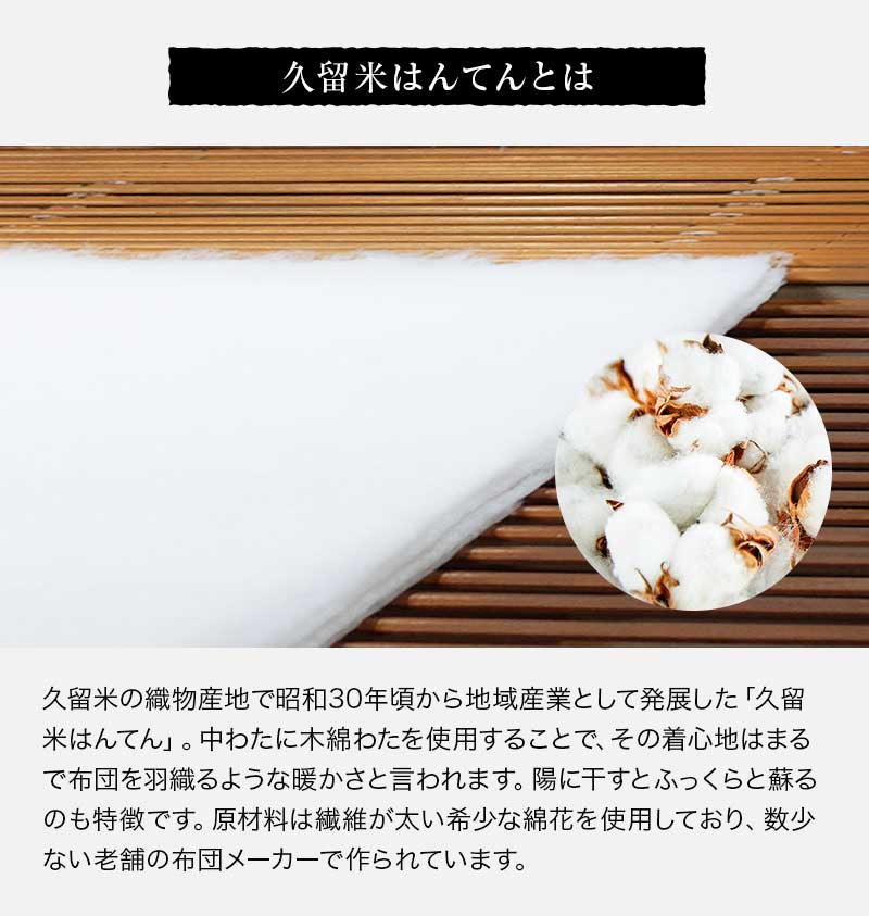 | 素 材 | 表生地:綿100% 裏地:綿100% 中綿:綿70% ポリエステル30% |