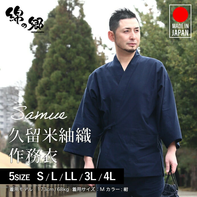 日本製 作務衣 久留米 紬織 メンズ 男性 綿100% XL XXL ファッション 部屋着 おしゃれ 父の日 敬老の日 ギフト プレゼント