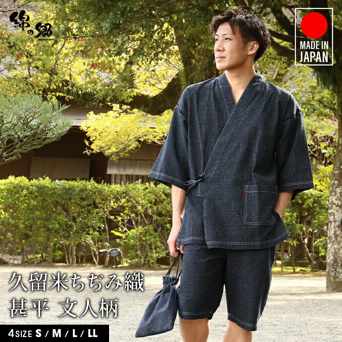 日本製 甚平 メンズ 男性用 じんべい 久留米ちぢみ織 文人柄 通気性 夏 浴衣 涼しい 綿100% 父の日 敬老の日 ギフト 贈り物 プレゼント