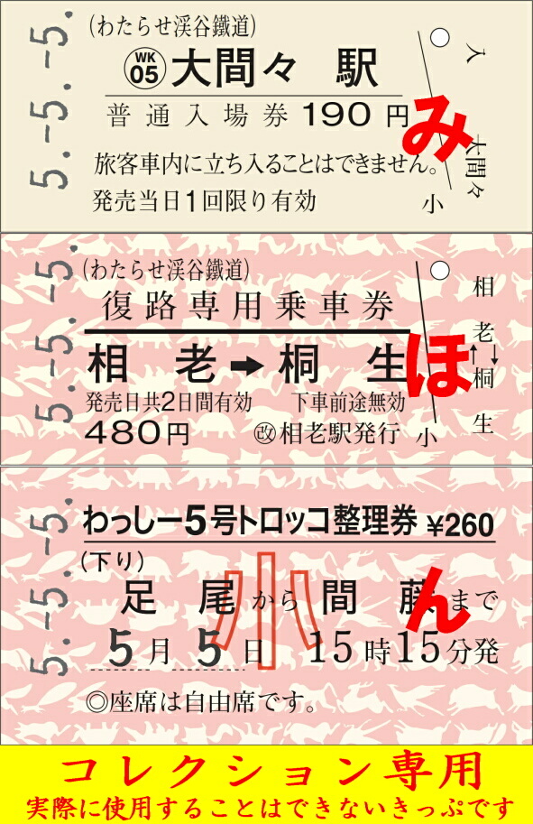 わたらせ渓谷鐵道 5並びきっぷ(わ鐵版3枚組)