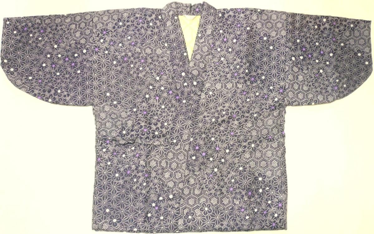 絞り柄なので、たいへんおしゃれなイメージの前合わせの半天です。前合わせなので、お腹の部分もしっかり暖かくなります。