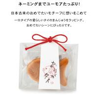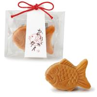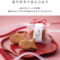 一口タイプの愛らしいタイのまんじゅうをラッピング。おめでたいシーンにぴったりです。