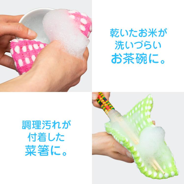 New 泡立ちスポンジ!アクリル糸とスポンジ状のナイロン糸を編み込んだ新しい感覚のスポンジです。