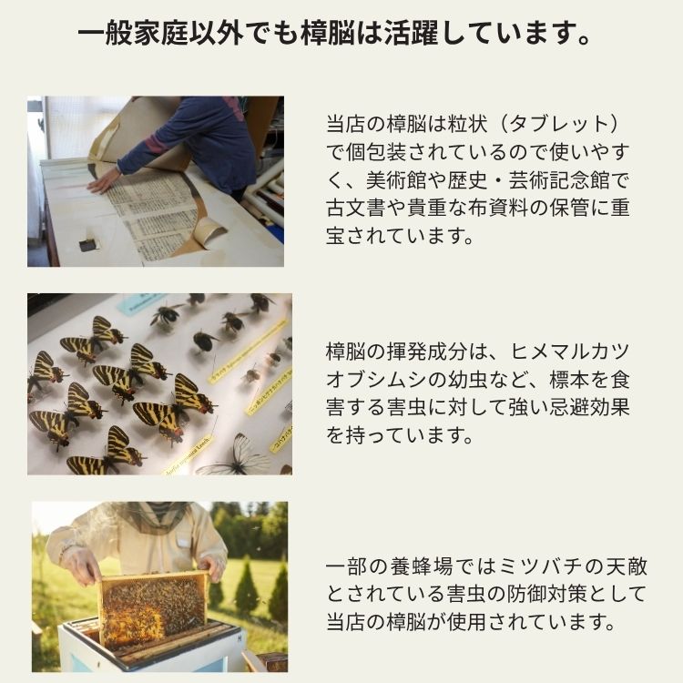当店の天然樟脳は自然な香りで大切な衣類を守る、