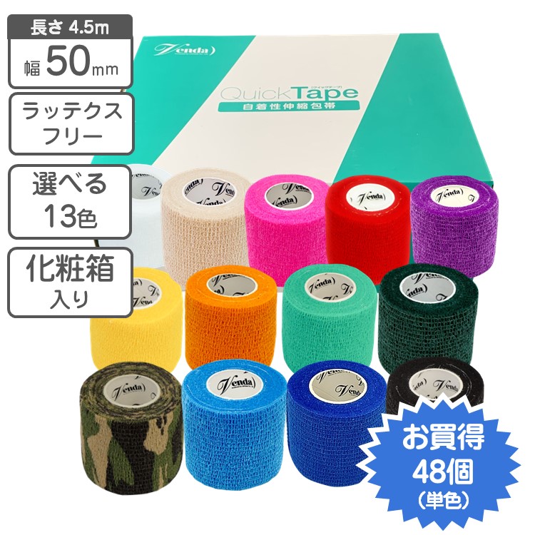 また色染めにおいて若干の誤差が生じ、毎回同じ色とは限りません。ご了承の上お買い求めください。Venda 自着性 伸縮包帯 クイックテープ スポーツのテーピングや動物の傷口保護など用途に合わせて使い方色々