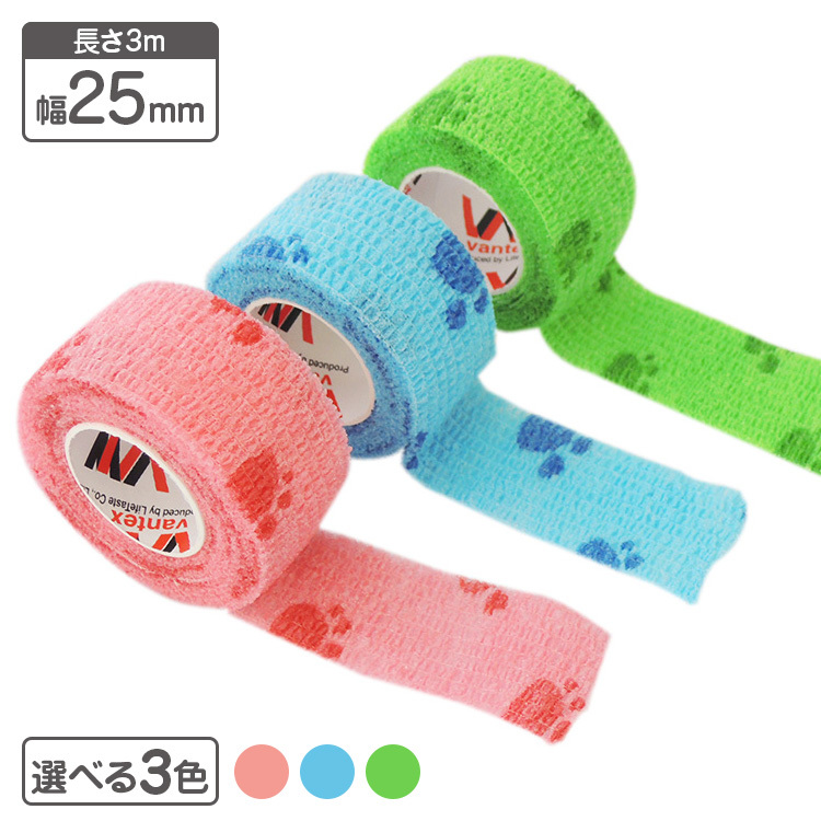 大手ペットショップチェーン店で採用されている肉球のデザインが可愛い自着性伸縮包帯です。