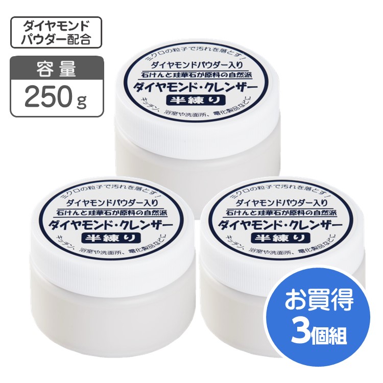 天然のヤシ油から作った高品質石鹸に、研磨剤として天然の珪華石(温泉の湯の花)人工ダイヤモンドパウダーのみを配合して作っています。