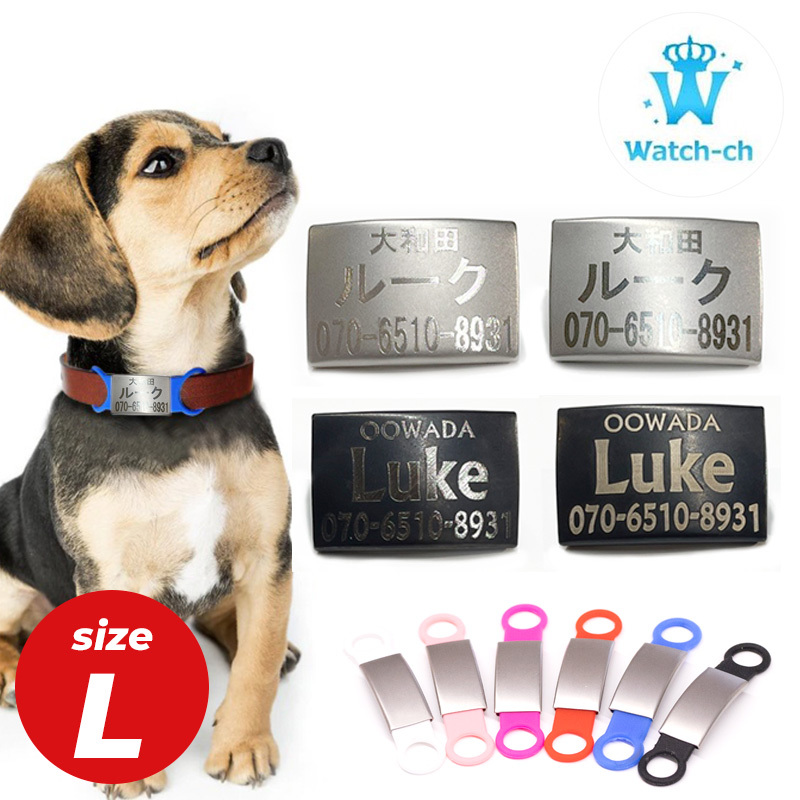迷子札 首輪・リードに装着可能 Lサイズ オリジナル 犬 猫 ゴム付き 迷子札