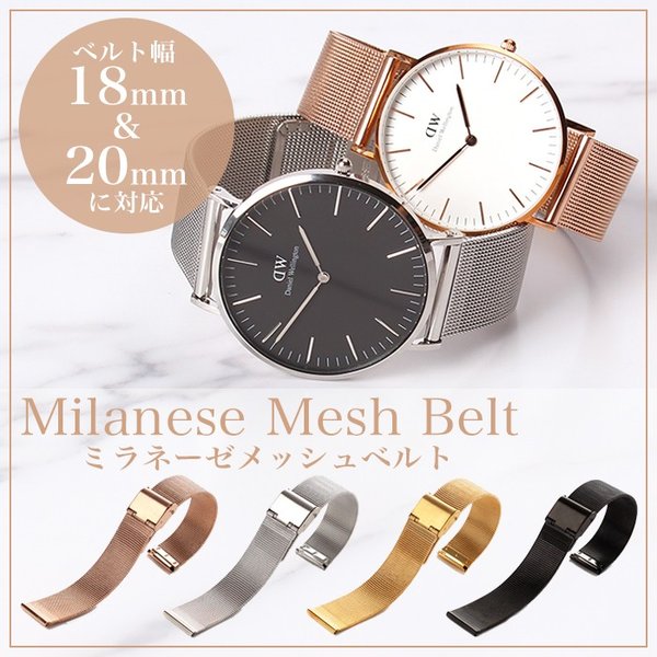 | イージークリック搭載のワンタッチで簡単に交換可能なメタルメッシュベルト。 ベルト幅(カン幅)18mm・20mmの2サイズに対応し、人気のダニエルウェリントン腕時計クラシックシリーズのケース幅36mm・ 40mmモデルや、CLUSE(クルース)、KLASSE14(クラスフォーティーン)、KOMONO(コモノ)、Christian Paul(クリスチャンポール)、The Horse(ザ・ホース)、ORIBIANCO(オロビアンコ)、Paul Hewitt(ポールヒューイット)、MICHAEL KORS(マイケルコース)、Marc Jacobs(マークジェイコブス)、NIXON(ニクソン)などの腕時計にも対応します。 ベルトを交換するだけでシーンやファッションに合わせたコーディネートが気軽に楽しめます♪ カップルで違うフェイスの時計にベルトを揃えてペアウォッチ感覚で楽しめるので、ペアコーデ・リンクコーデのギフトとしてプレゼントにするのもオススメです。 【対応モデル一例】 [ ダニエルウェリントン/DanielWellington ] ダニエルウェリントン クラシックシリーズ 36mmケース 40mmケースに対応 0106DW 0107DW 0109DW 0111DW 0206DW 0207DW 0209DW 0211DW 0114DW 0214DW DW00100109 DW00100110 0607DW 0608DW 0610DW 0611DW 0513DW 0613DW DW00100111 DW00100112 0508DW 0507DW 00100139DW 00100141DW 00100150DW 00100140DW 00100138DW 00100136DW 00100137DW 00100145DW 00100147DW 00100151DW 00100146DW 00100144DW 00100142DW 00100143DW [ クルース/CLUSE ] CL18008 CL18010 CL18011 CL18014 CL18015 CL18016 CL18017 CL18023 CL18029 CL18210 CL18208 CL18211 CL18215 CL18216 CL18406 CL18408 CL18410 CL18415 CL18416 CL18414 CL18105 CL18109 CL18112 CL18114 CL18115 CL18116 CL18110 CL18117 CL18111 CL18301 CL18302 CL18303 ※上記以外の商品にもベルト幅が合うものであればご使用いただけます。