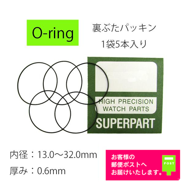 腕時計 部品 裏蓋パッキン Oリング 厚み 0.6mm 内径 13.0mm〜32.0mm 1袋 5本入り ガスケット 電池交換 修理 裏ぶた パーツ 汎用品
