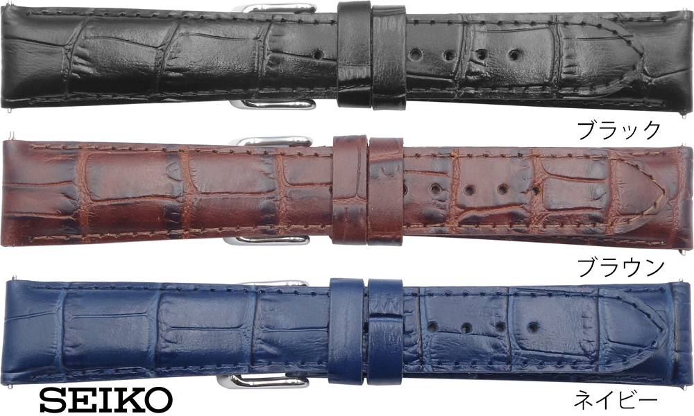 18mm 19mm 20mm セイコー SEIKO 腕時計 時計 ベルト RS01C カーフ 牛革 ワニタケフ型押 黒(ブラック) こげ茶(ブラウン) 紺(ネイビー) スマートチェンジ