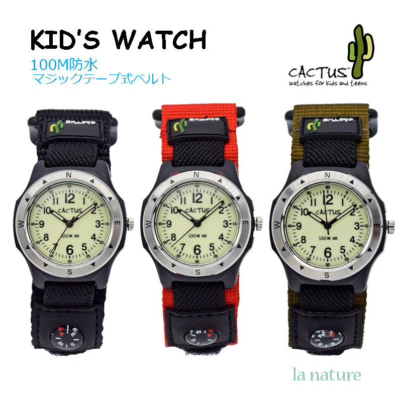 こども 腕時計 CACTUS CAC65 100m防水 マジックテープ こども キッズ Kidz 男の子 女の子 安心の日本正規品