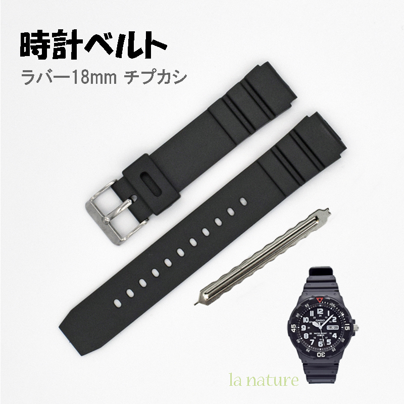 腕時計用 ラバーバンド ベルト 18mm 工具付き CASIO MRW-200H AE-1200WH などにも対応可能 ブラック 尾錠 シルバー