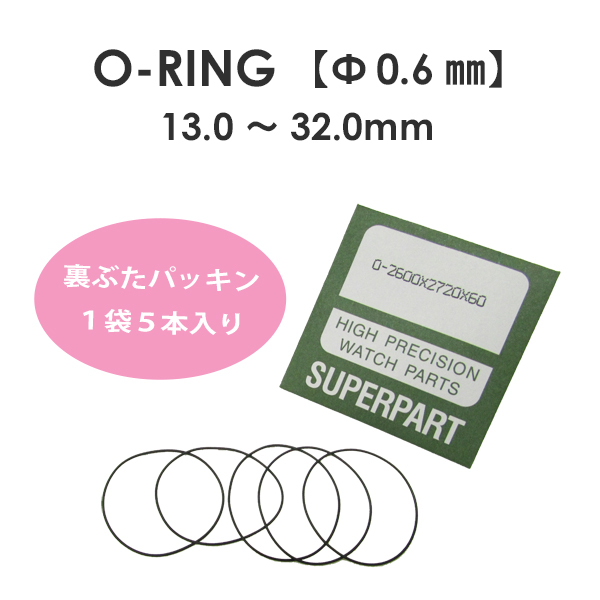 腕時計 部品 裏蓋パッキン Oリング 厚み 0.6mm 内径 13.0mm〜32.0mm 1袋 5本入り ガスケット 電池交換 修理 裏ぶた パーツ 汎用品