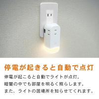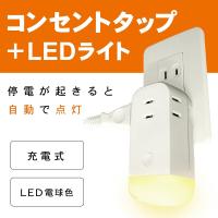 ●普段はコンセントタップとして、停電時はライトとして使用できる。●停電が起こると自動で点灯。●コンセントから外して携帯灯に●2段階調光機能付き。●コンセント差し込み口3個。●足元灯や枕元灯に。●充電切れの心配なし。●1年保証付き。 ラッピング不可商品 代引き不可商品