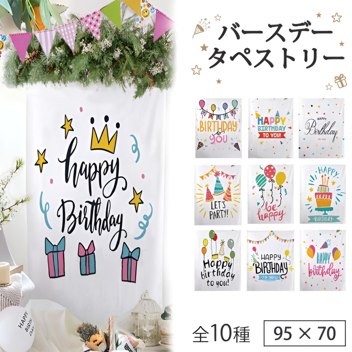 商品紹介sezuBAIRTHDAY TAPESTRY 10TYPEバースデータペストリー 95cm×70cm楽しくてカラフルなデザインのバースデータペストリー。