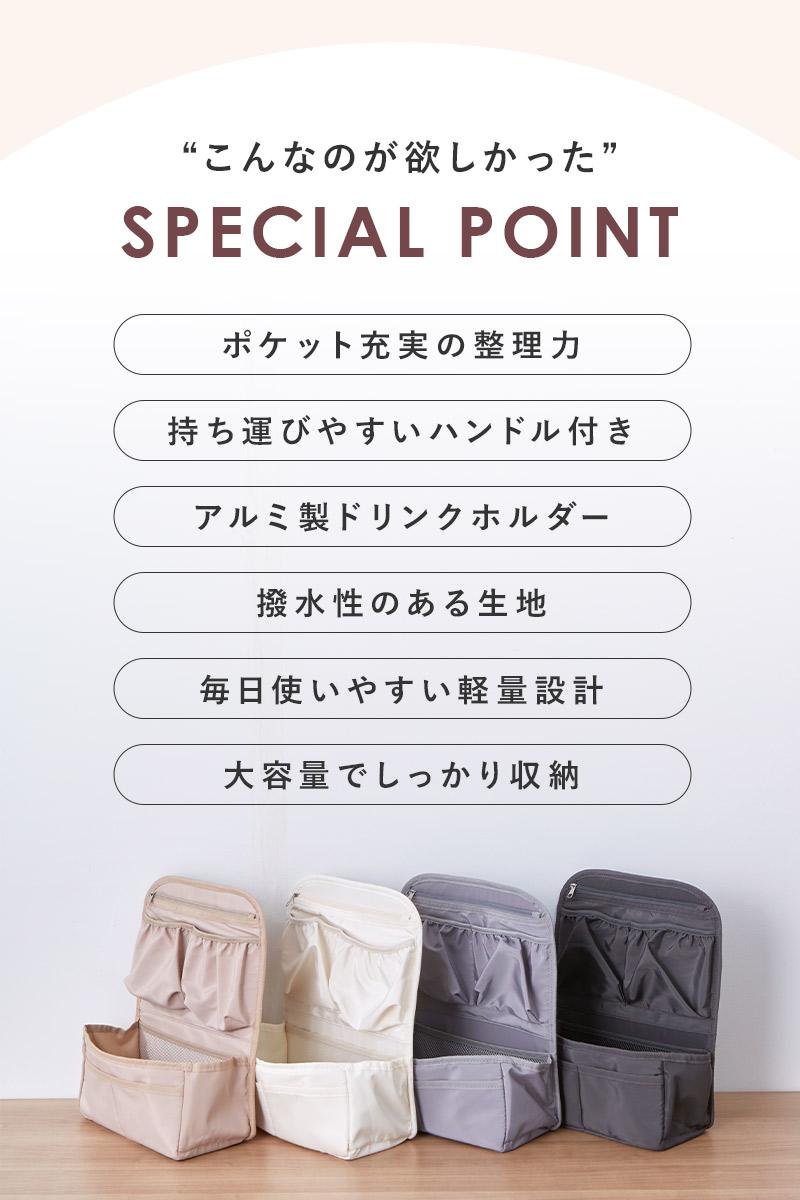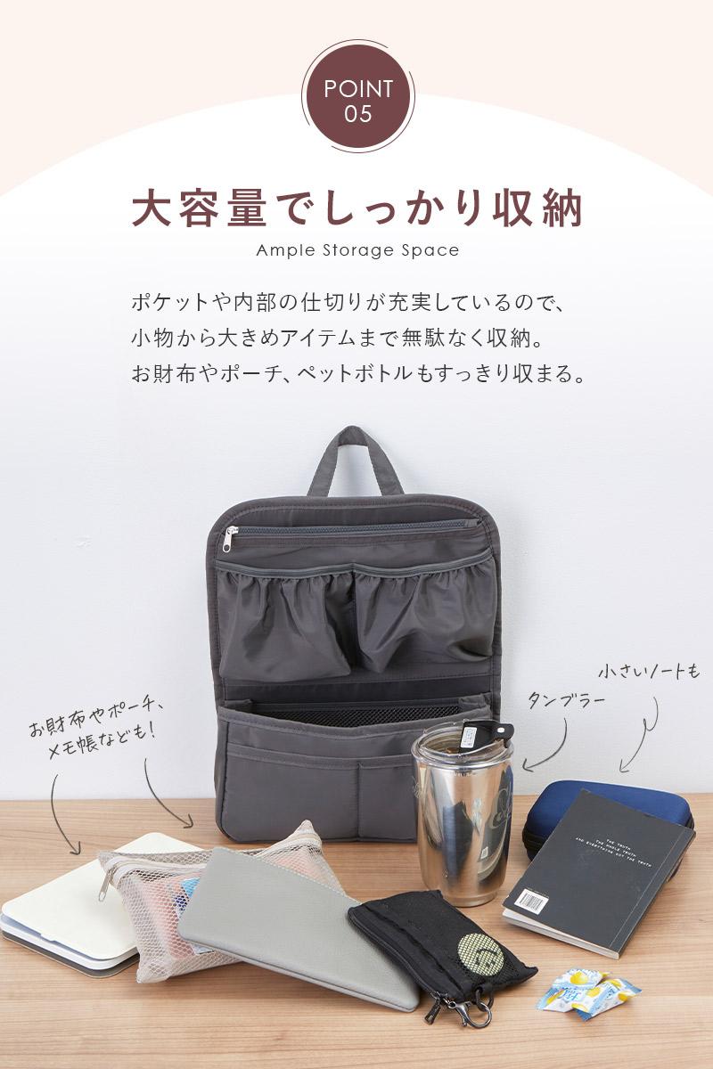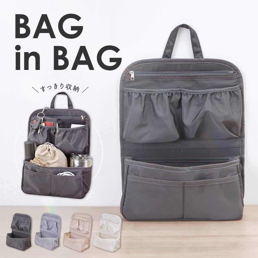 仕切りやポケットがたくさん付いたバッグインバッグなら、荷物がスッキリ整頓できます。