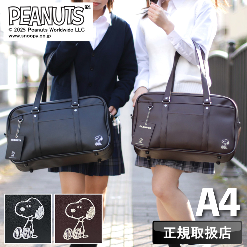 SNOOPY スヌーピー スクールバッグ スクールボストン 合皮 A4 PEANUTS ピーナッツ SY1991 スクバ 高校生 中学生 女子 男子 パスケース付き 通学 キャラクター