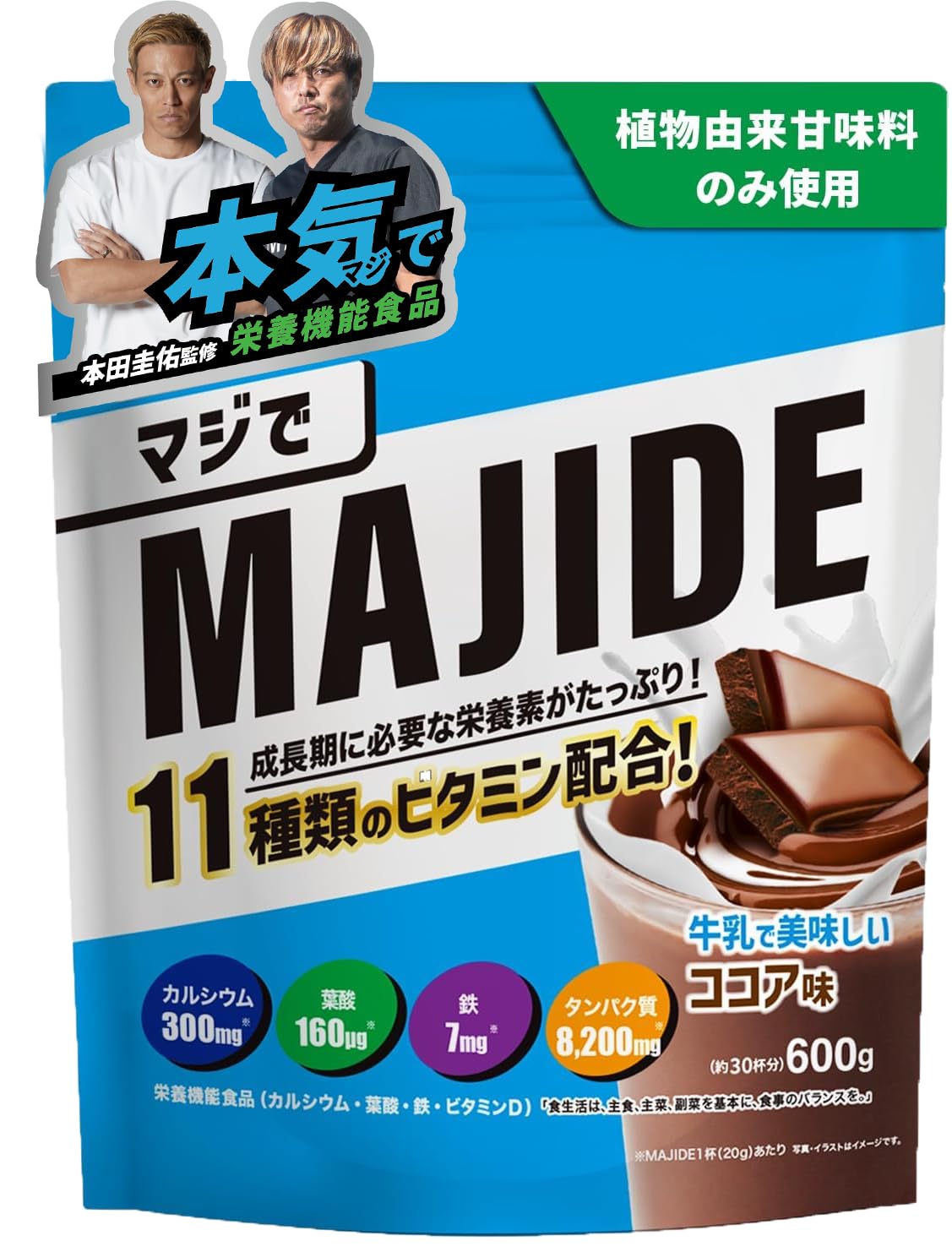 MAJIDE ジュニアプロテイン ココア 本田圭佑 完全栄養食 30食分 600g マジで 朝の完全栄養ココア 栄養機能食品 ココア味 11種のビタミン配合 栄養士監修