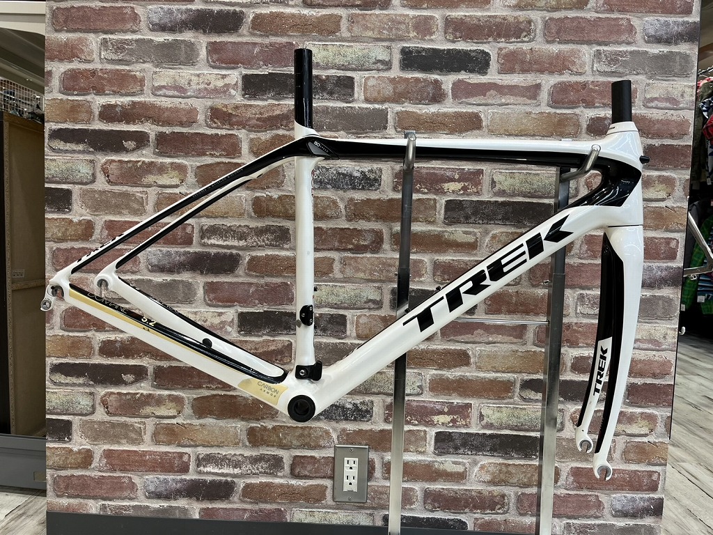 フレーム:OCLV500カーボン フォーク:カーボン サイズ:52 ヘッドチューブ:14.5mm トップチューブ:530mm(ホリゾンタル換算) シートチューブ:47.5mm(C-C) FD:直付け BB:BB90 ブレーキ:キャリパー シートポスト:専用規格(TREK シートマスト) コラム:1-1/8 OS コラム残長:約65mm エンド:100/130mm QR 重量:1.65kg(フレーム・フォーク)