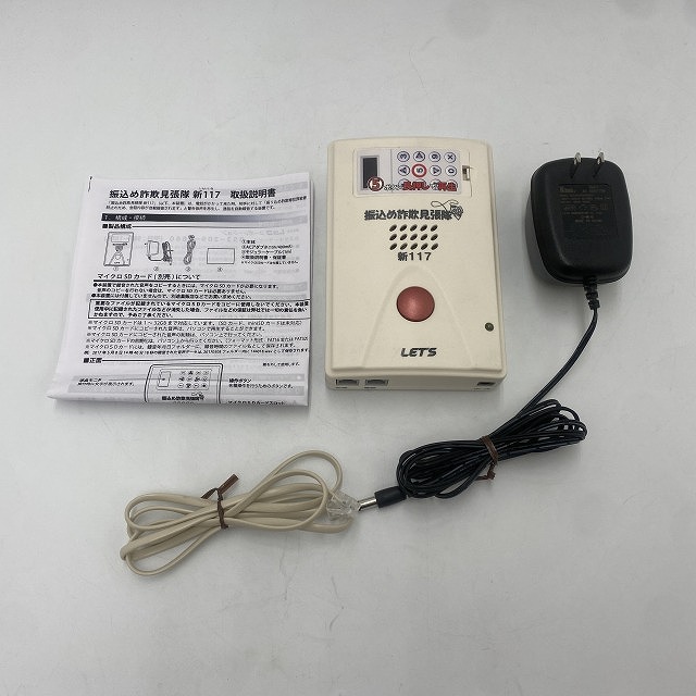 | ブランド名 | レッツコーポレーション レッツコーポレーション | | 商品名 | 自動通話録音機 振り込め詐欺見張隊 新117 | | 商品説明 | 振り込め詐欺見張隊 新117 | | 付属品 | 説明書,ACアダプター,電話線