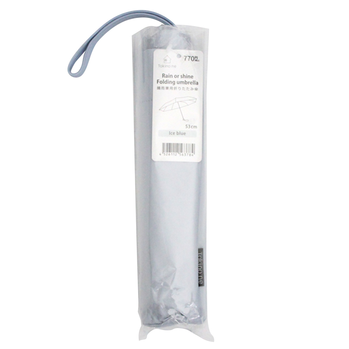 こちらの商品は、ワッツの雑貨店、Tokino:ne(ときのね)のラインナップ商品で、紫外線対策も雨降り対策も通年使用できる「晴雨兼用」の折りたたみ傘。ニュアンスカラーが可愛い。こちらはアイスブルーです。