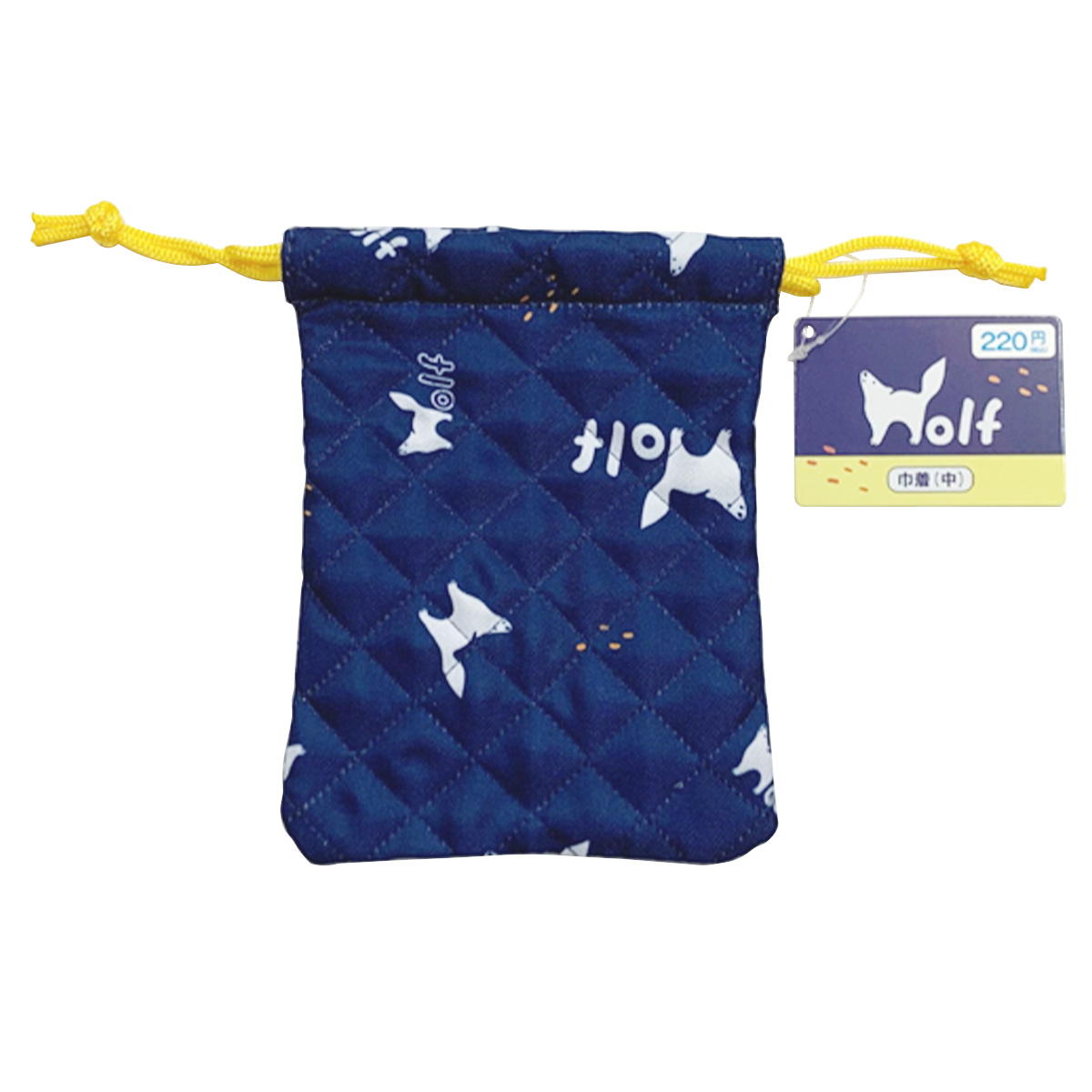 新入園、入学グッズ、ちょっとした小物を入れるのに便利なキルティング素材の巾着袋。