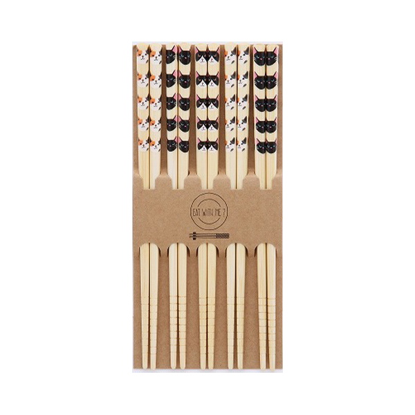 箸セット 竹 5膳セット ねこ柄 かわいい 313150