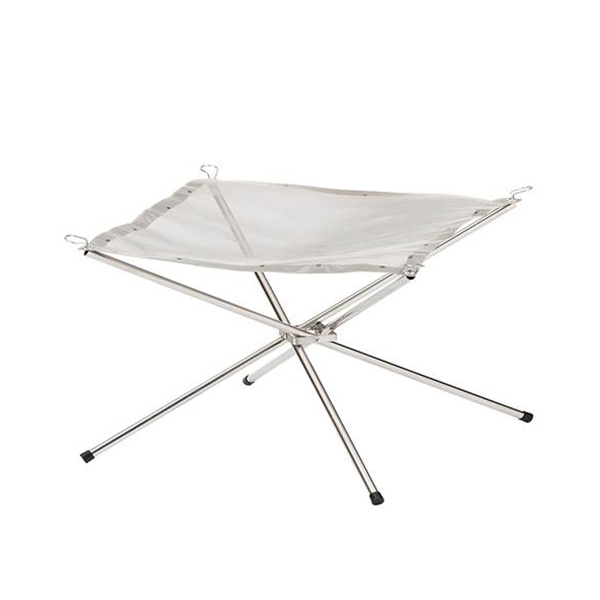 野外で焚き火をするときの薪置き場になる焚き火スタンドです。炭火料理と焚き火、どちらも同時に楽しめるアイテム。細かいメッシュで燃焼効率も良いアイテムです。キャンプアイテムとして一つ持っていると便利です。屋外用の焚き火台です。薪目安1-5kg。収納袋付き。耐荷重5kg。