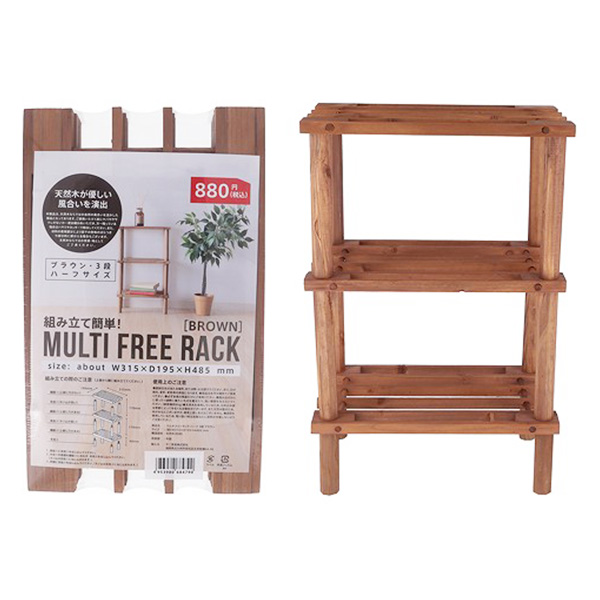ラック オープンラック 物品棚 小棚 木製 3段 diy 収納棚 おしゃれ 北欧 マルチフリーラック ハーフ 3段 ブラウン W31.5×D19.5×H48.5cm 325101