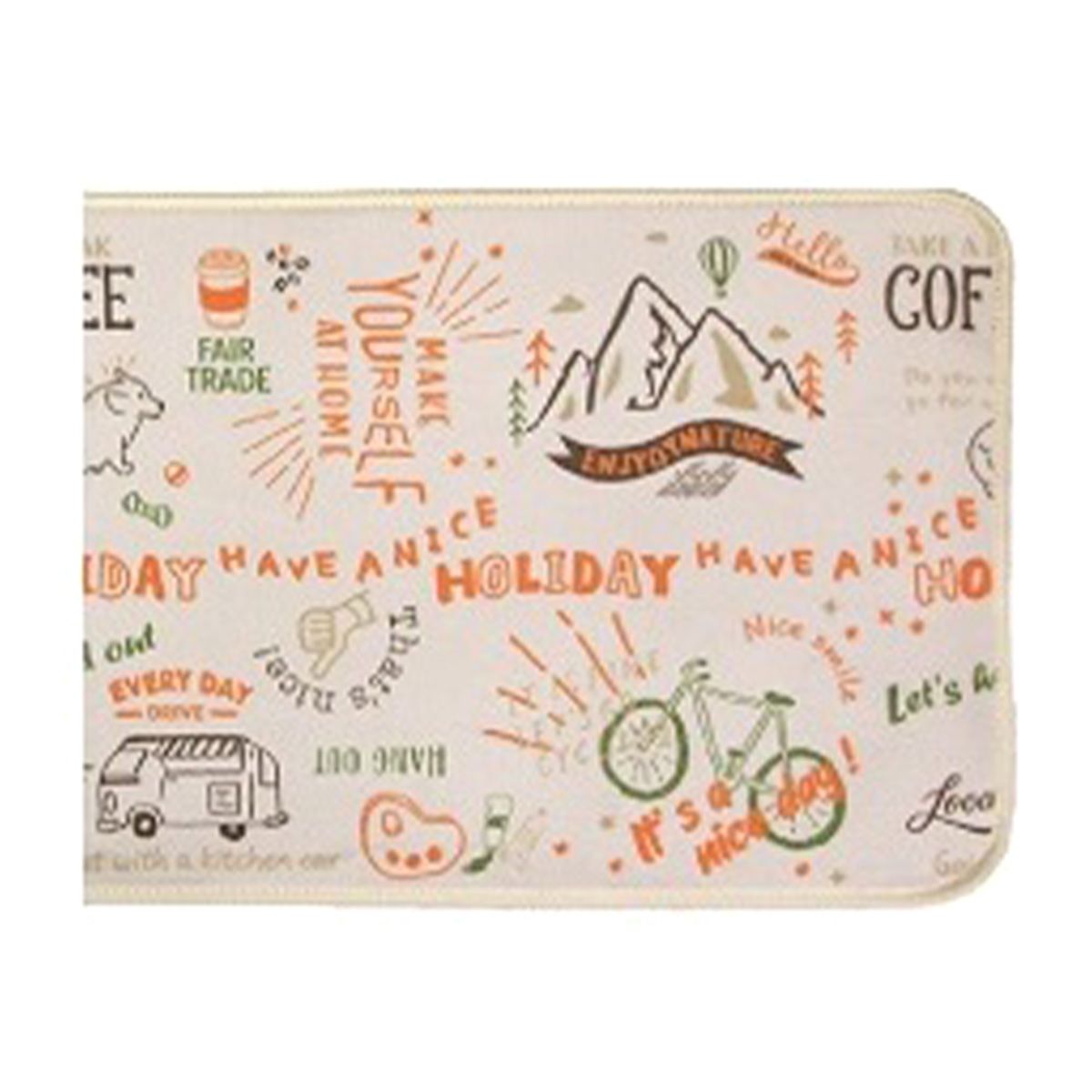 こちらのアイテムは、ロゴやイラストのプリントがおしゃれなキッチンマットです。流し台の下に。