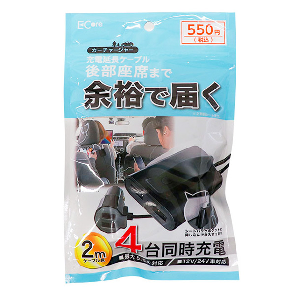 カーチャージャー 4ポート スマホ充電器 車載充電器 シガーソケット 車 USB4ポート延長ケーブル付き G-11 355261