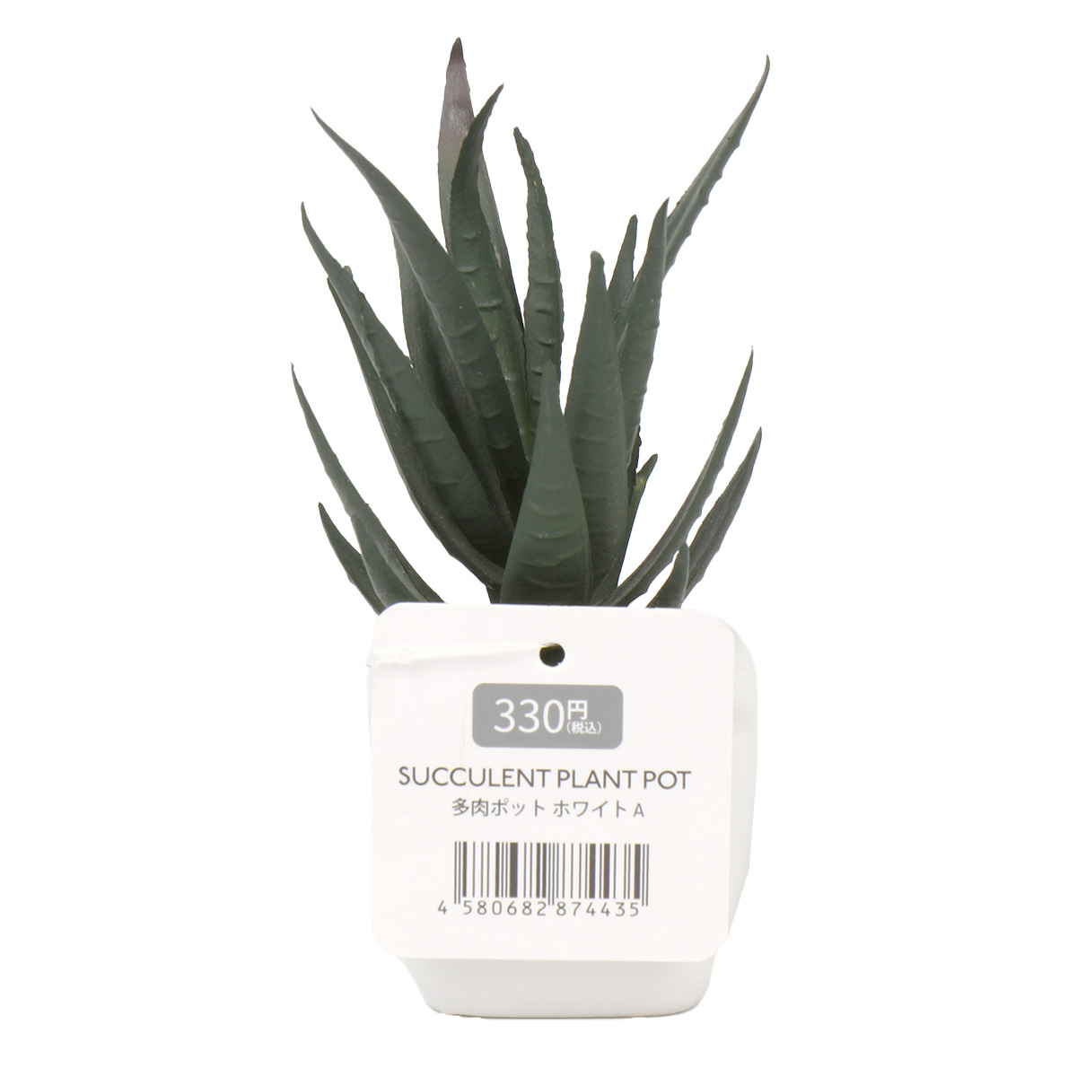 鉢花 多肉ポット ホワイト A/アロエ 造花 フェイクグリーン 357716