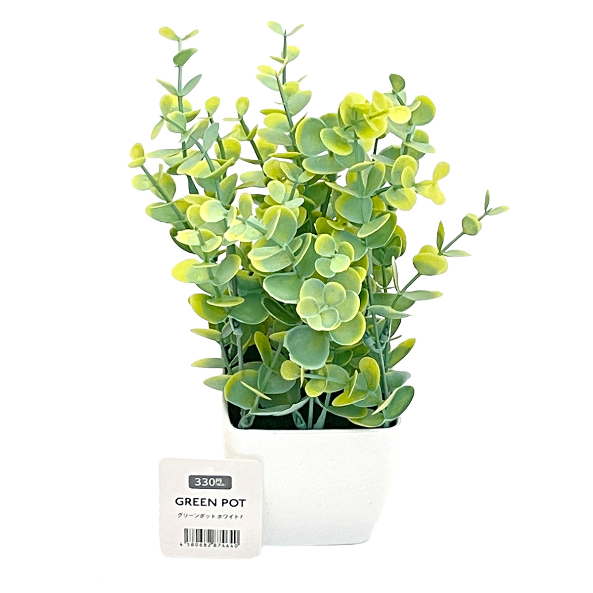鉢花 グリーンポット ホワイト F/ユーカリの葉 造花 フェイクグリーン 357737