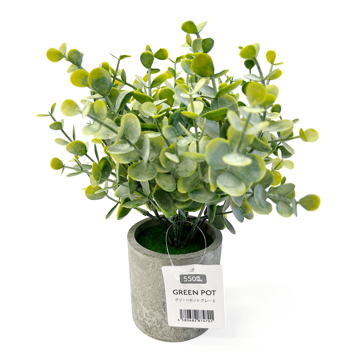 鉢花 グリーンポット グレー E/ユーカリの葉 造花 フェイクグリーン 357743