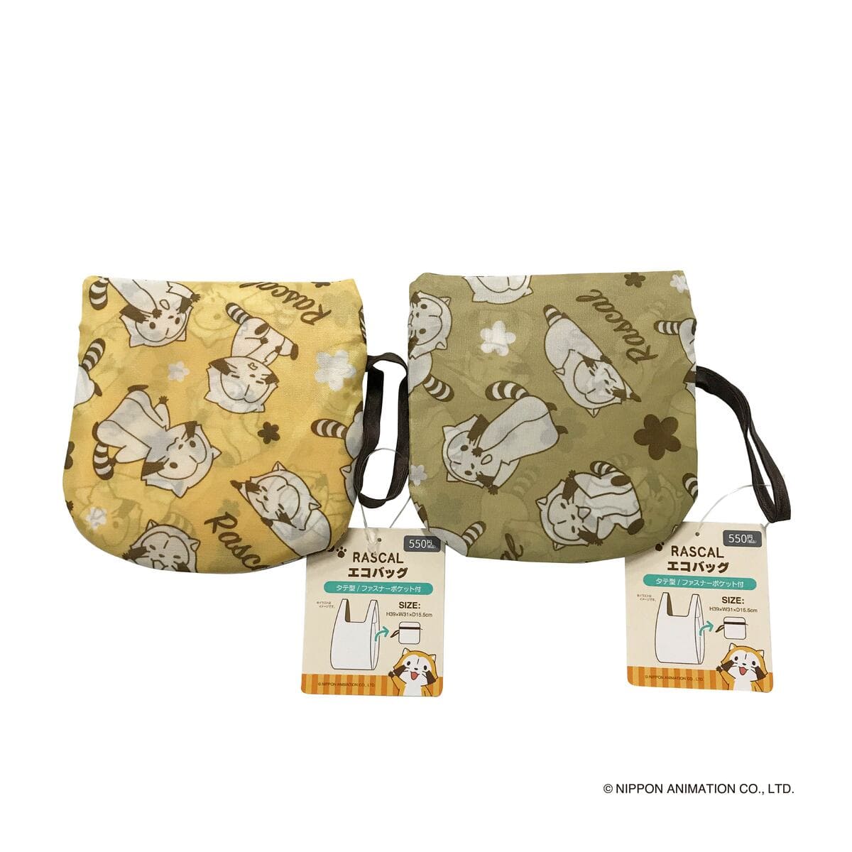 コンパクトで持ち運びに便利な、ラスカル ( フラワー柄 )の エコバッグ タテ型 ファスナーポケット付です。