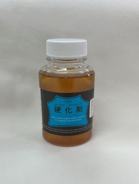 革を形付けた後、刷毛等で革の裏面に塗り乾かします