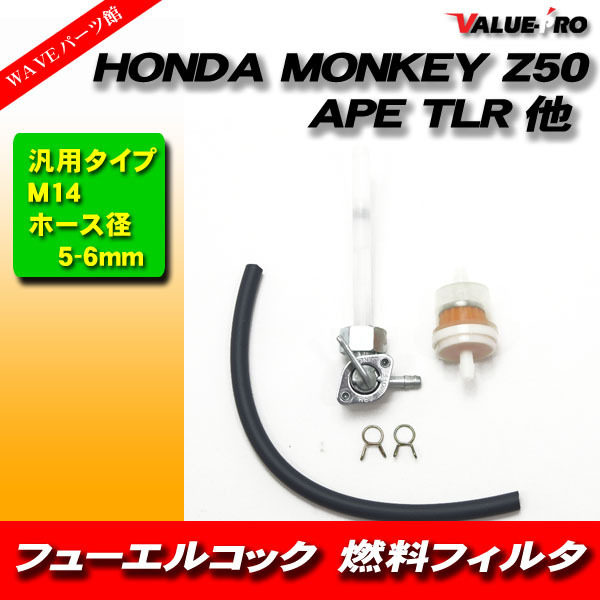 モンキー ゴリラ エイプ TLR 燃料コックセット / 燃料フィルター付き フューエルコック DAX カブ ホンダ小型車に!M14コック