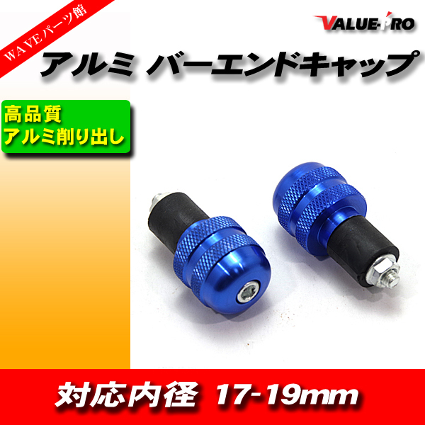 アルミ バーエンドキャップ バーエンド 青 ブルー/新品汎用 22mmハンドルバー穴 17〜19mm