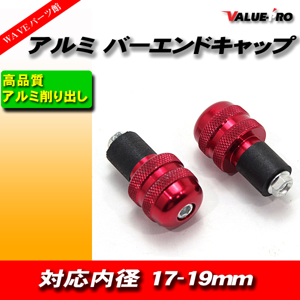 アルミ バーエンドキャップ バーエンド 赤 レッド/新品汎用 22mmハンドルバー穴 17〜19mm