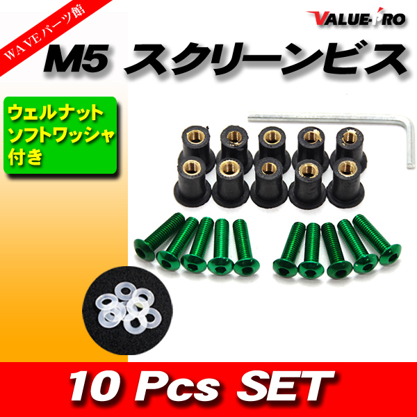 汎用 アルミ スクリーンビス M5 10本セット緑 グリーン / TZR50 RZ250R TZR250 FZR YZF FJR1300 R1 R6 TDR250 他