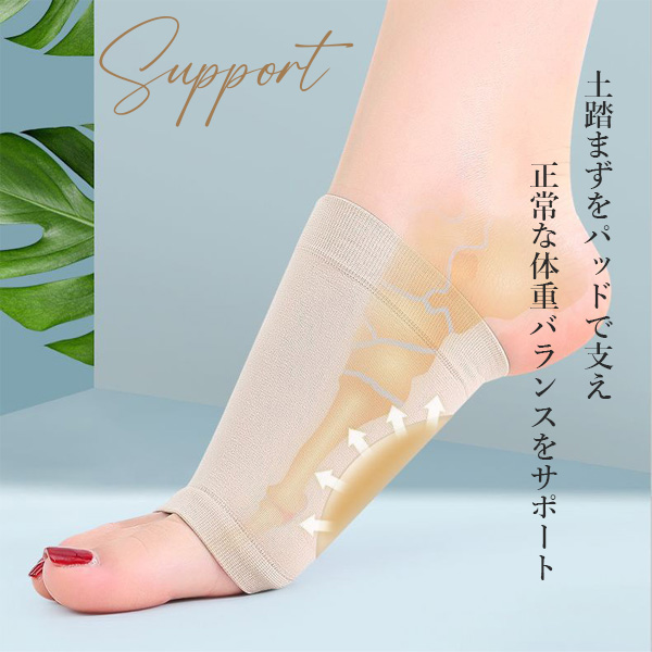 アーチパッドサポーターで土踏まず部分を支えることでバランスの良い歩行をサポート