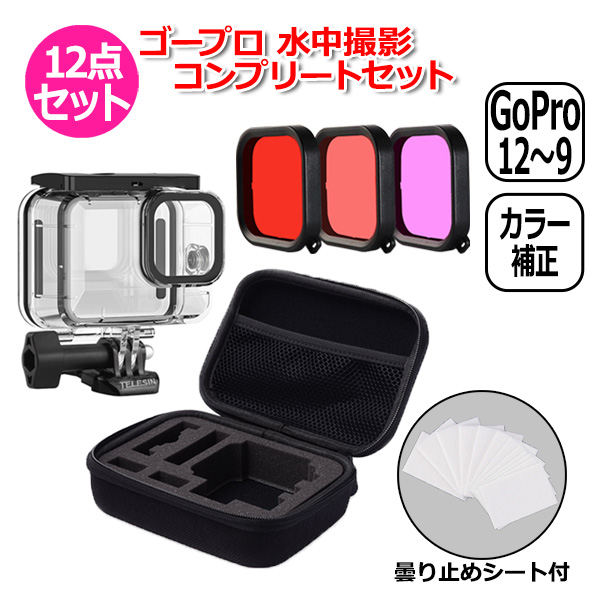 GoPro ゴープロ 12 11 10 9 用 アクセサリー 水中 撮影 コンプリート 12点 セット アクションカメラ ウェアラブルカメラ 防 送料無料