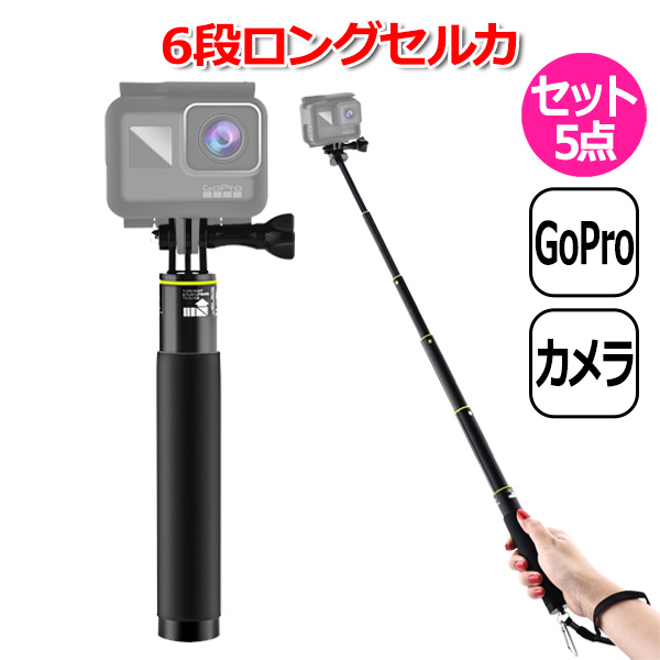 GoPro ゴープロ アクセサリー 6段 ロング セルカ スタンド アクションカメラ ウェアラブルカメラ 万能 自撮り 棒 アルミ 送料無料
