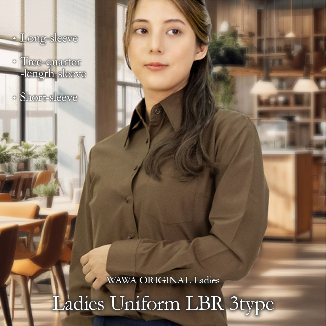 ビジネス・ワイシャツ・レディース・Yシャツ・カッターシャツ・長袖・長袖ワイシャツ・七分袖・七分袖ワイシャツ・半袖・半袖ワイシャツ・カフェ・ユニフォーム・茶・ブラウン・レギュラーカラー・作業服・事務服・Sサイズ・Mサイズ・Lサイズ・LLサイズ・3Lサイズ