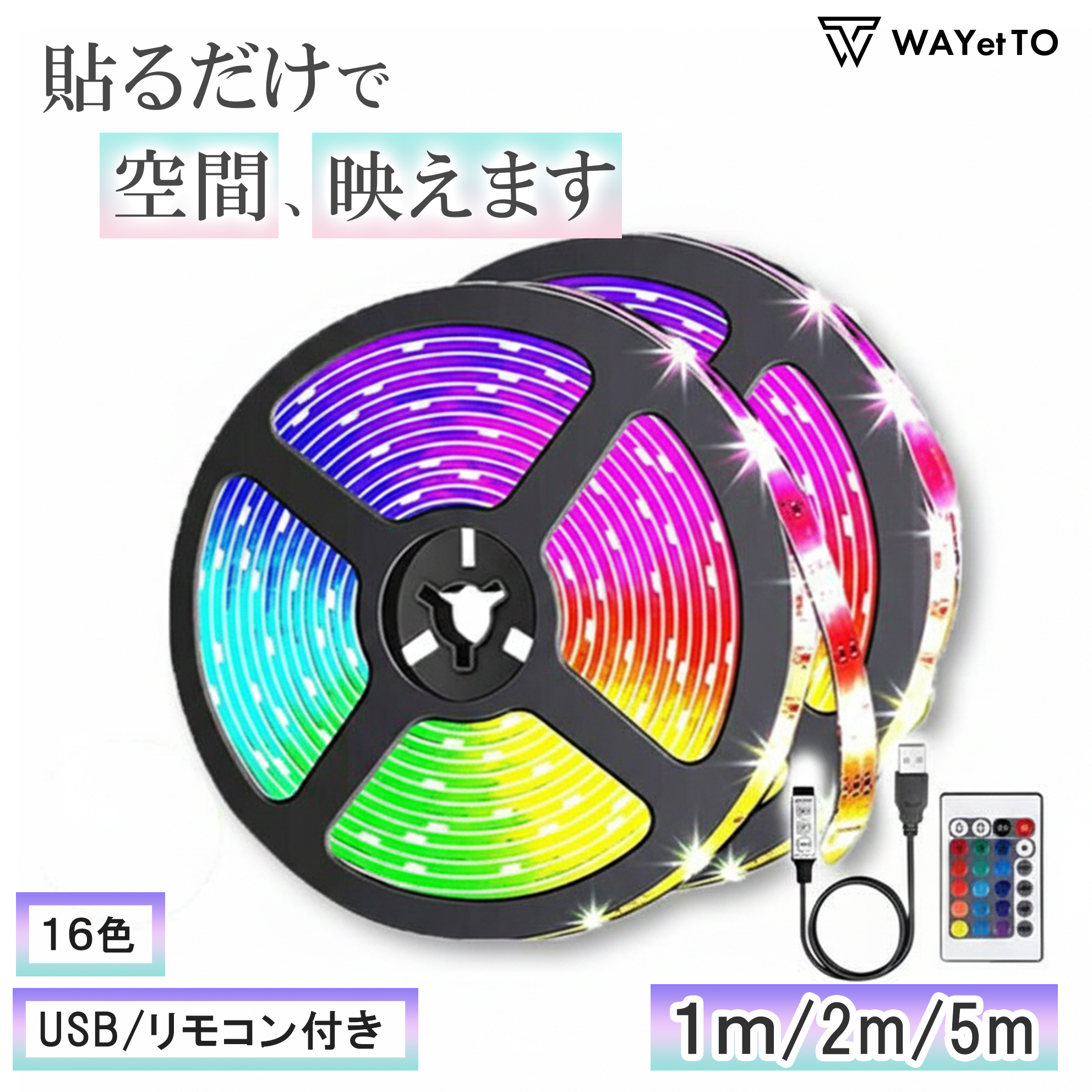 虹色 レインボー 16色 usb電源 リモコン 調光 調色 両面テープ